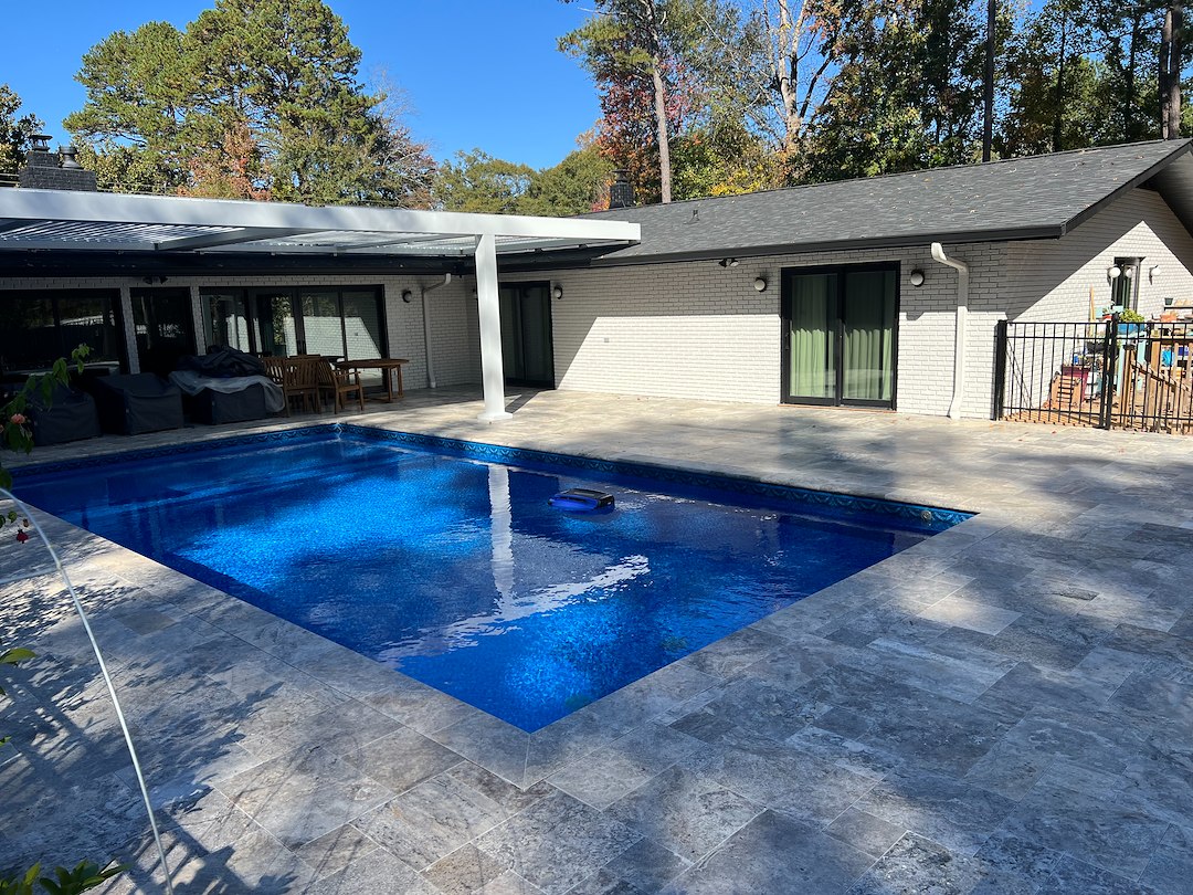 Aquapro Softwash, Greenville’s trusted pressure and soft washing company, recently completed a concrete driveway cleaning along with the travertine pool deck cleaning project in Greenville, SC. Over time, driveways and pool areas naturally accumulate dirt, algae, mildew, and organic buildup that dull the appearance and can make surfaces slippery and unsafe. Our team used professional-grade equipment and cleaning solutions to safely remove these contaminants, restoring the surfaces to their natural beauty without causing damage. The delicate travertine pool deck was treated using our gentle soft washing technique, ensuring the stone retained its color and texture while being thoroughly cleaned. The transformation was outstanding, and the homeowner was extremely impressed with how clean, bright, and inviting their property looked after the service.