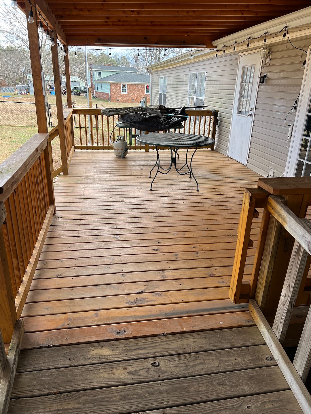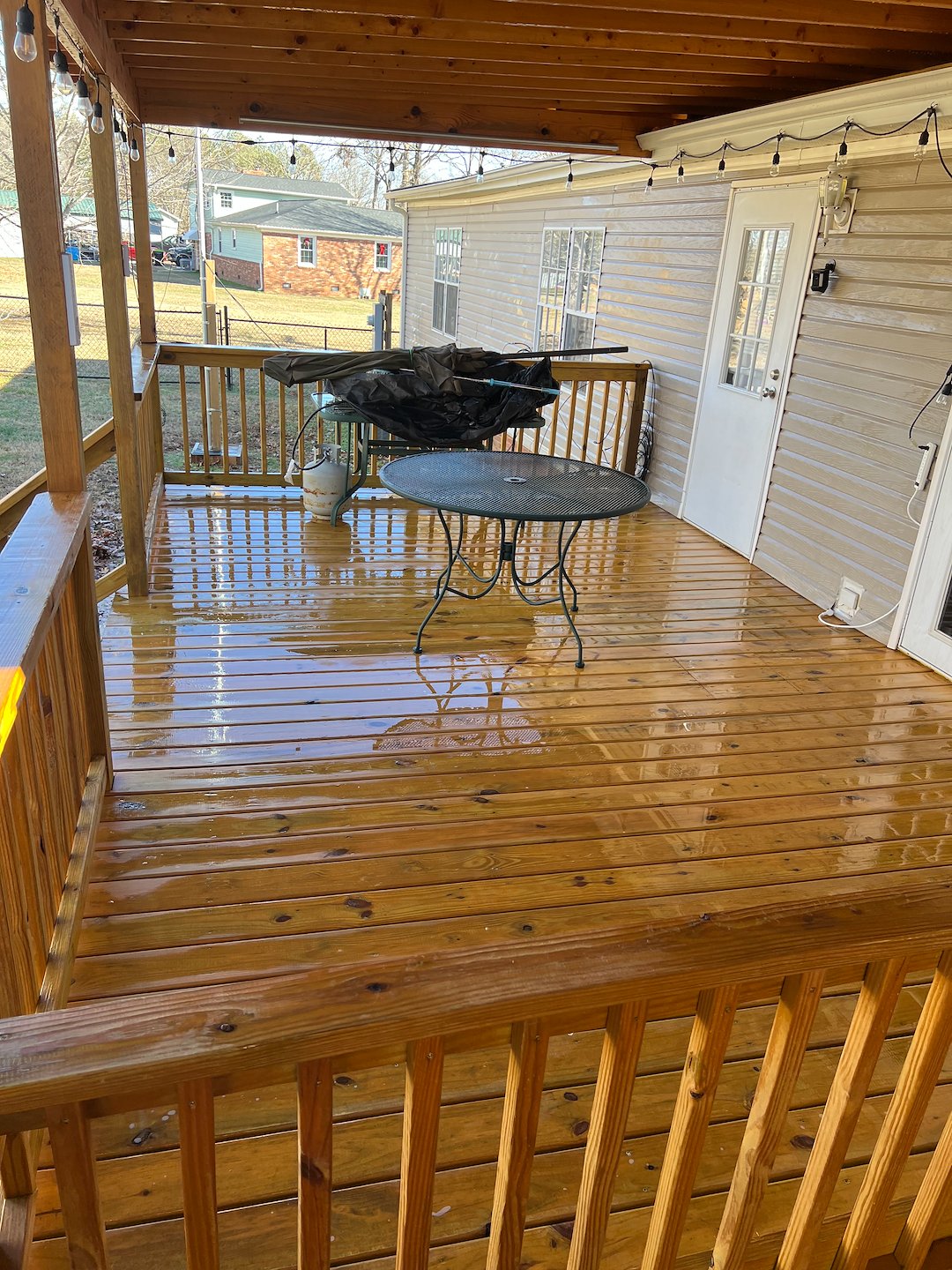Aquapro Softwash, Greenville’s trusted pressure washing and soft washing company, recently completed an exterior house washing and wood deck cleaning project in Pelzer, SC. The home’s exterior had developed noticeable dirt, algae, and organic buildup, while the wood deck showed signs of weathering and surface grime from prolonged exposure to the elements. Using our gentle soft washing technique, we safely cleaned the home’s siding without damaging the surface, restoring a bright, refreshed appearance. For the wood deck, we applied professional cleaning solutions and controlled pressure to remove buildup while protecting the integrity of the wood. The transformation was impressive, and the homeowner was extremely pleased with how clean and revitalized the property looked.