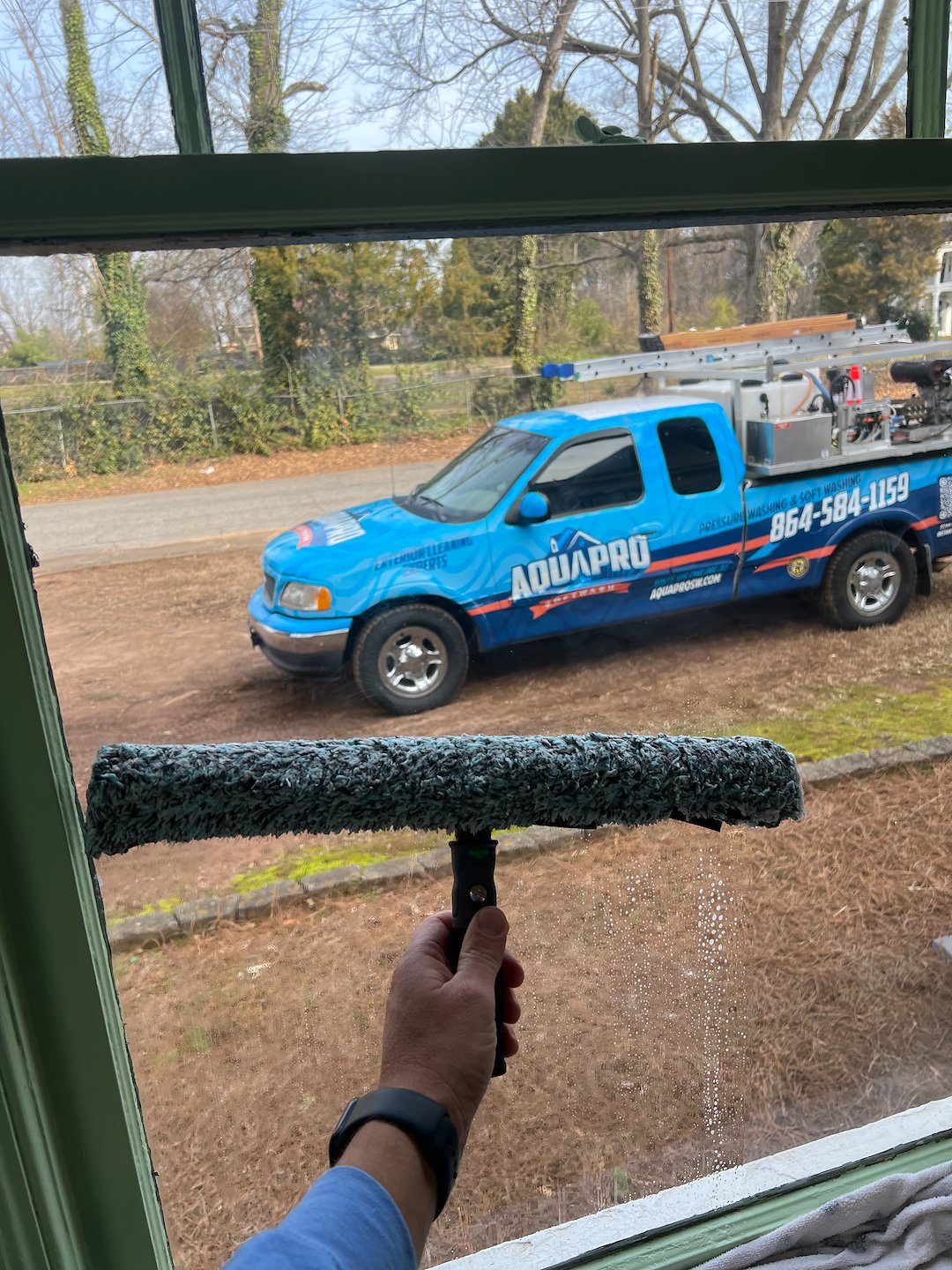 Aquapro Softwash, Greenville SC’s trusted pressure washing, soft washing, and window cleaning company, recently completed a professional window cleaning project for a beautiful historic home in Anderson, SC. Historic properties require special care and attention to preserve their character while ensuring exceptional cleaning results. Over time, the home’s windows had accumulated dirt, dust, pollen, and environmental buildup that reduced clarity and diminished the home’s overall appearance. Using our professional mop and squeegee window cleaning method, our team carefully cleaned the glass, frames, and edges to achieve a crystal-clear, streak-free finish without causing any damage to the delicate materials. The transformation was immediately noticeable, enhancing the home’s elegance and allowing natural light to shine through clearly. The homeowner was extremely pleased with the results and highly complimentary of our service, professionalism, and attention to detail.